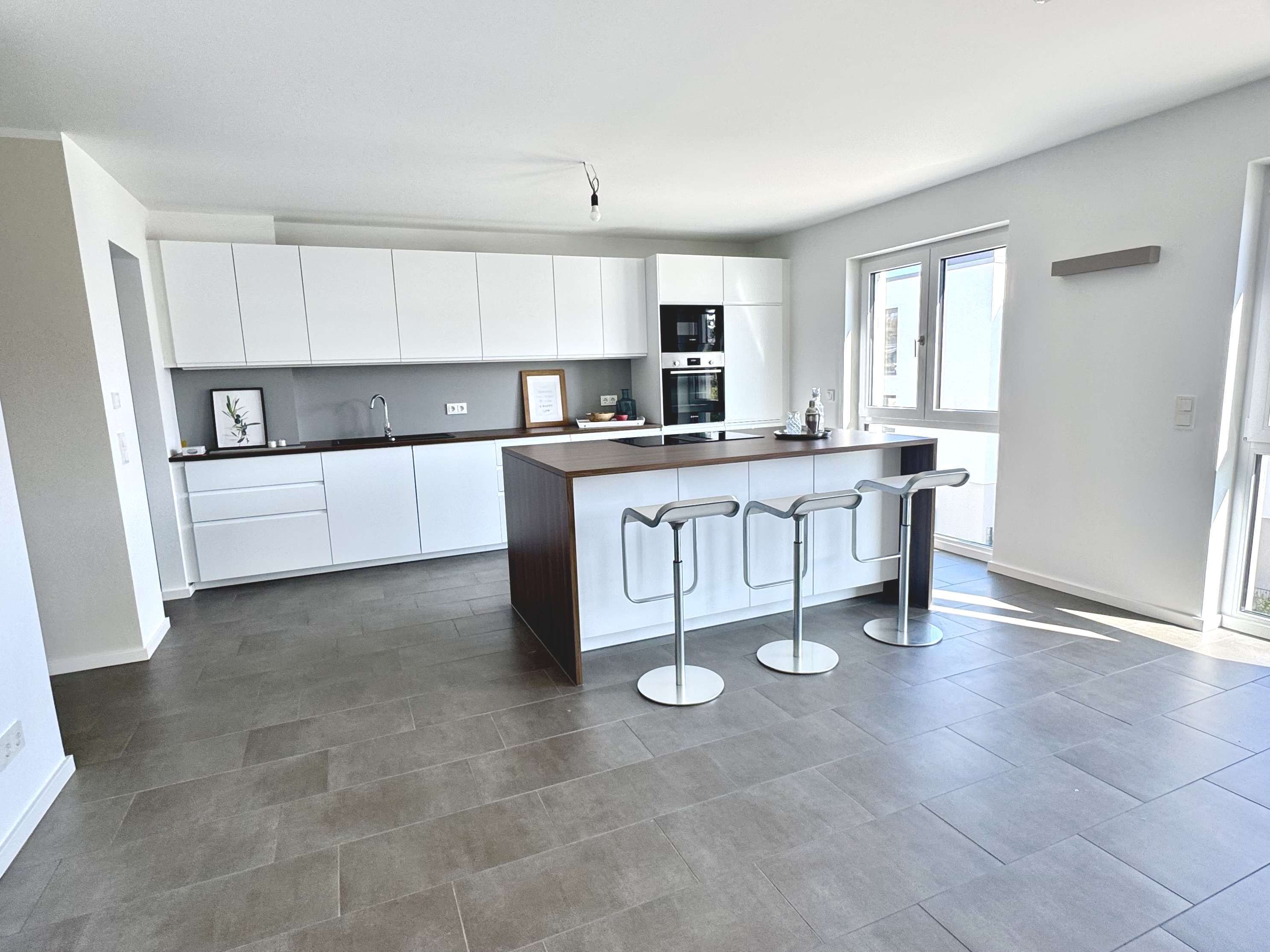 mit offener Küche ist das absolute Highlight der Wohnung. Abgerundet wird der Wohnbereich mit der sehr großen Eckbalkonbalkon. Dieser bietet gleichzeitig Schatten als auch ausreichend Sonneflächen.
