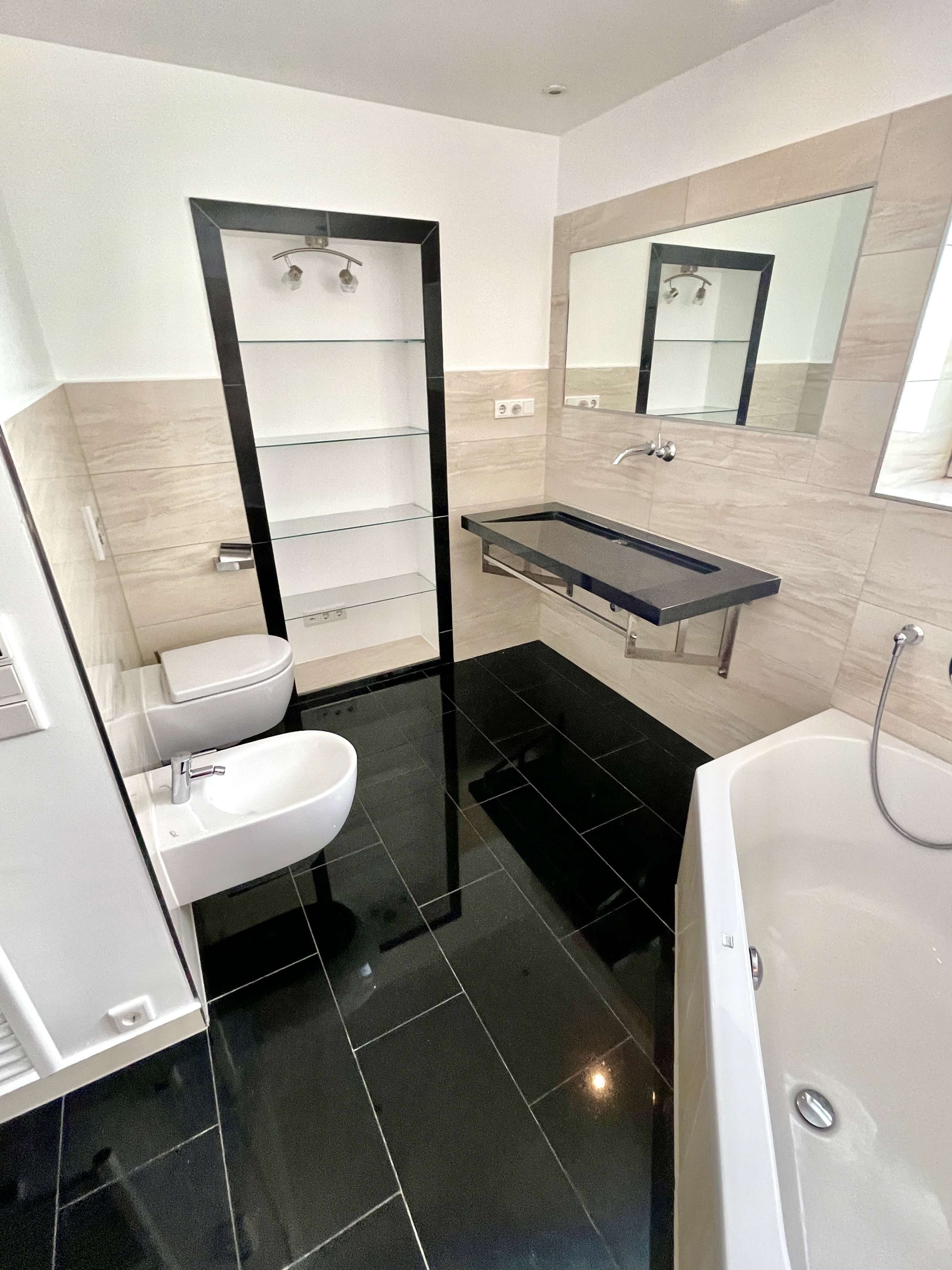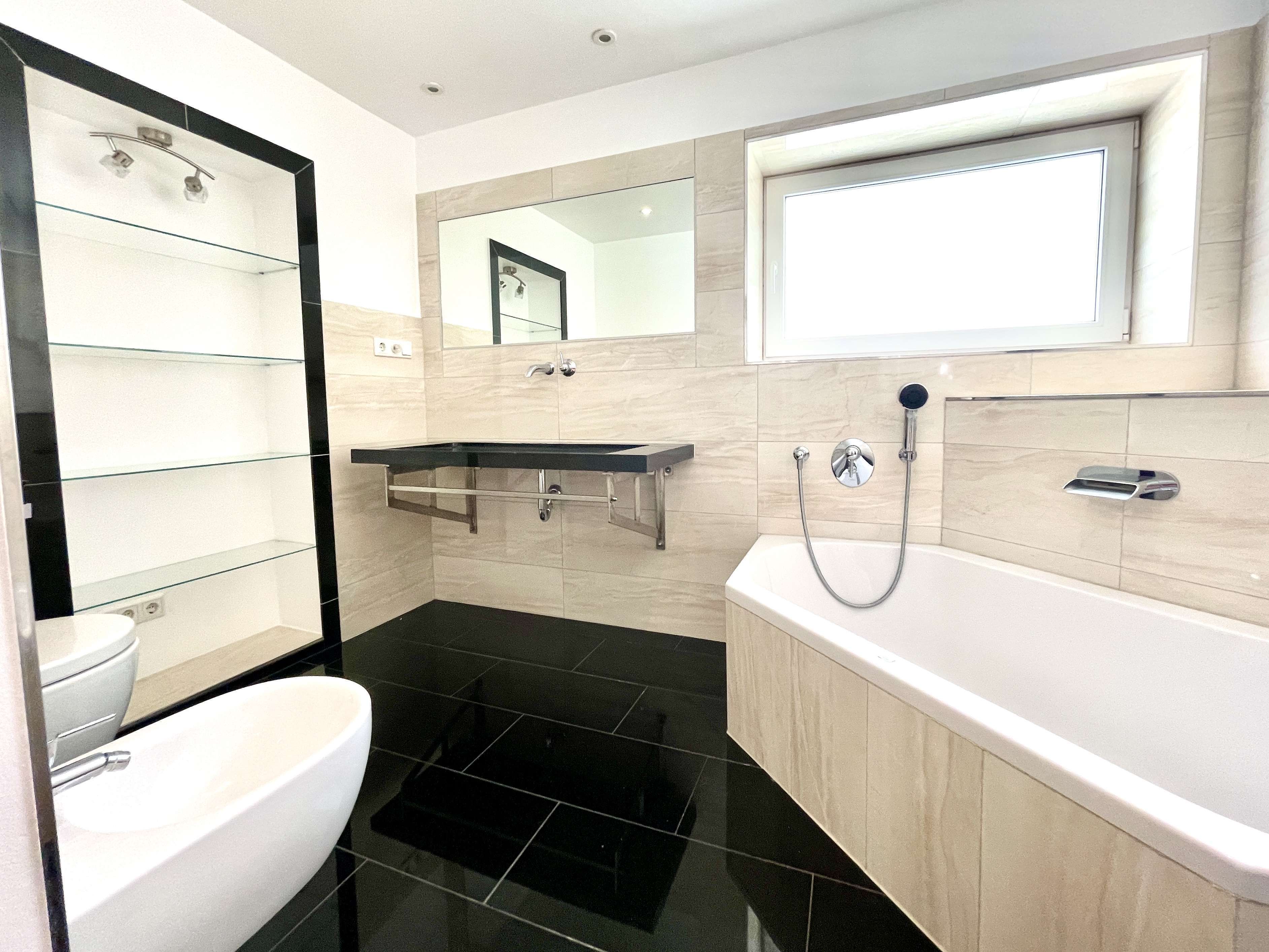 – modernes Tageslichtbad mit hochwertiger Ausstattung Eckwanne, Echtglasdusche, inkl. Regendusche