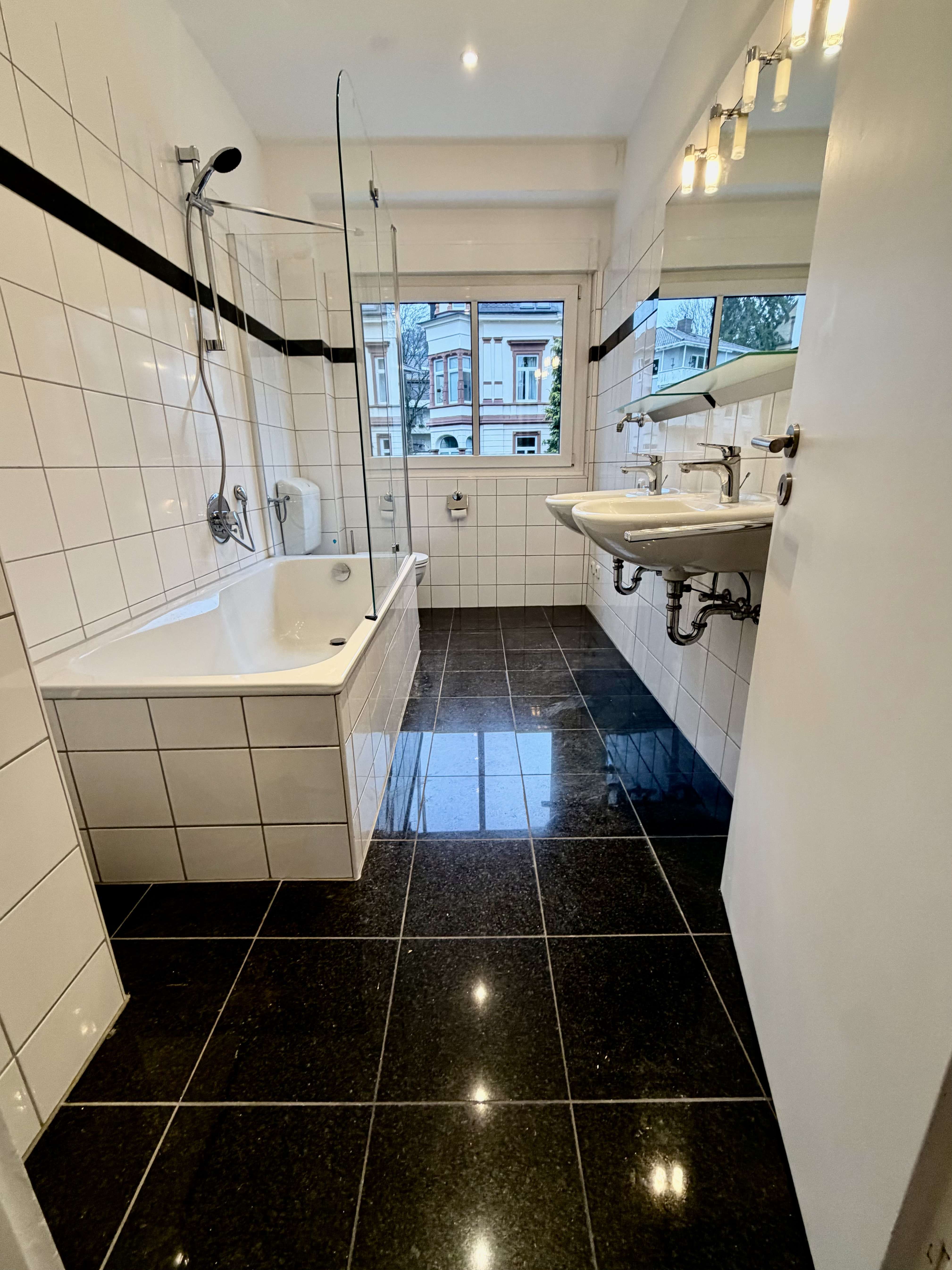 - Tageslichtbad mit Duschwanne & Waschbecken und WC