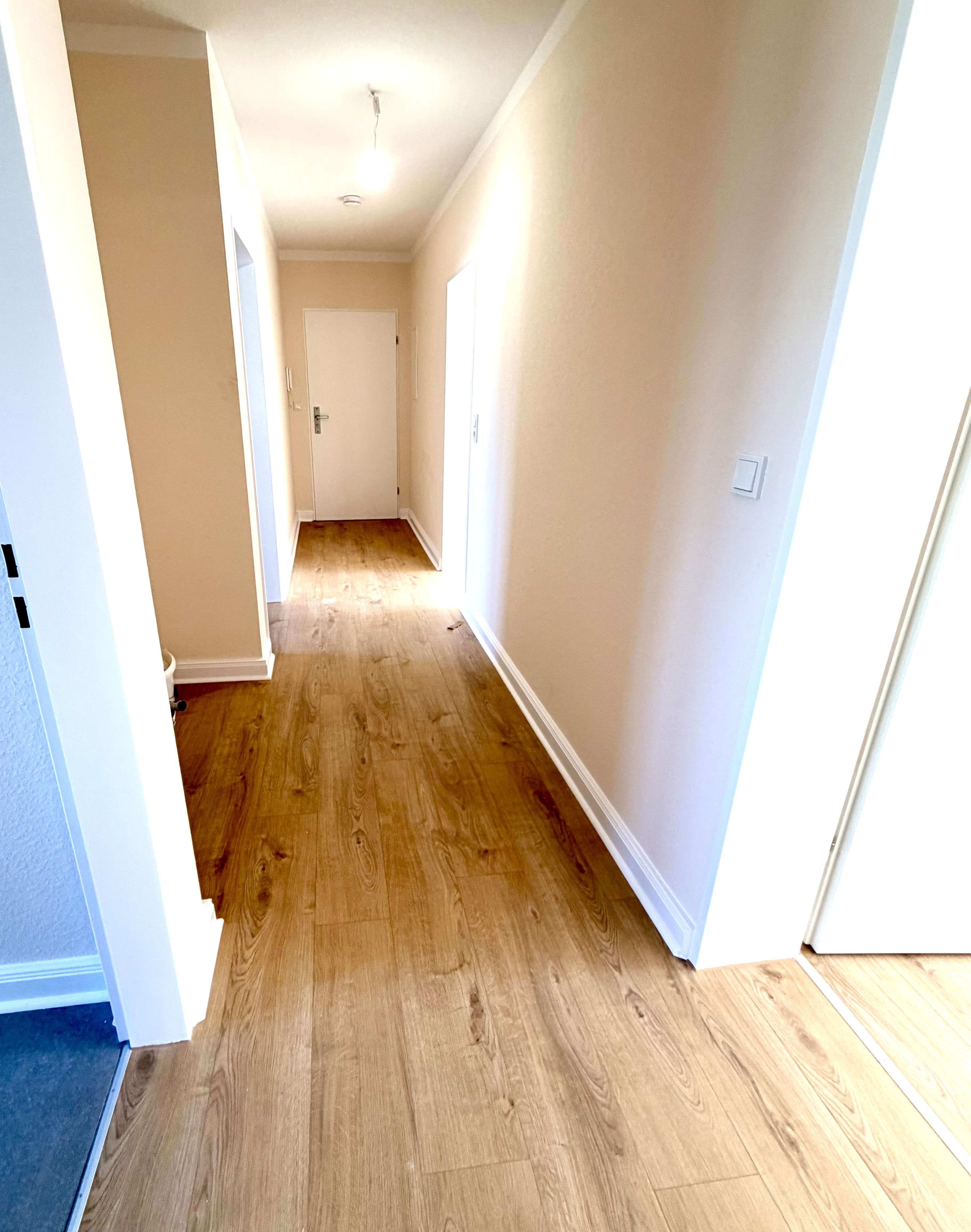 - Helle, freundliche Wohnräume mit hochwertigem Laminatbelag in Holzoptik.