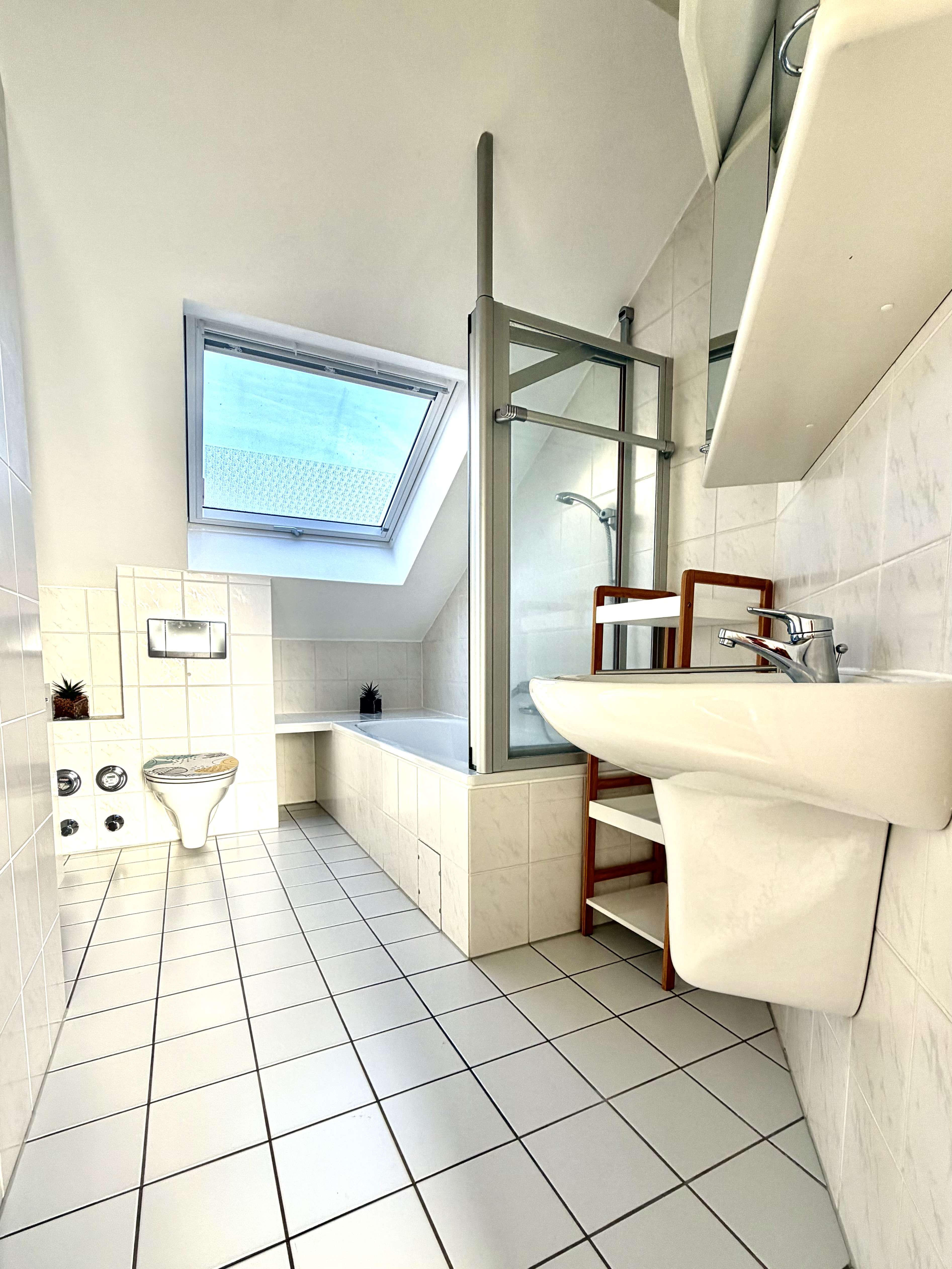 * Neuwertiges Badezimmer mit Duschwanne und Glasabtrennung